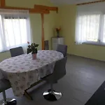 The apartment offers self-catering amenities, such as an equipped kitchen, and an outdoor dining area for guests' convenience.